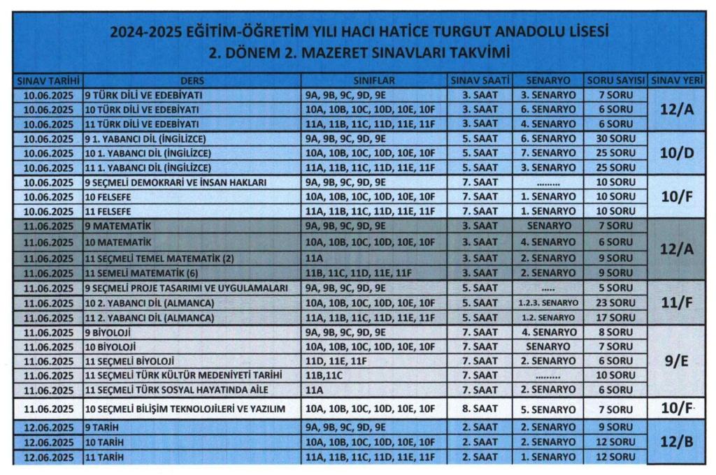 MAZERET SINAV TAKVİMİ