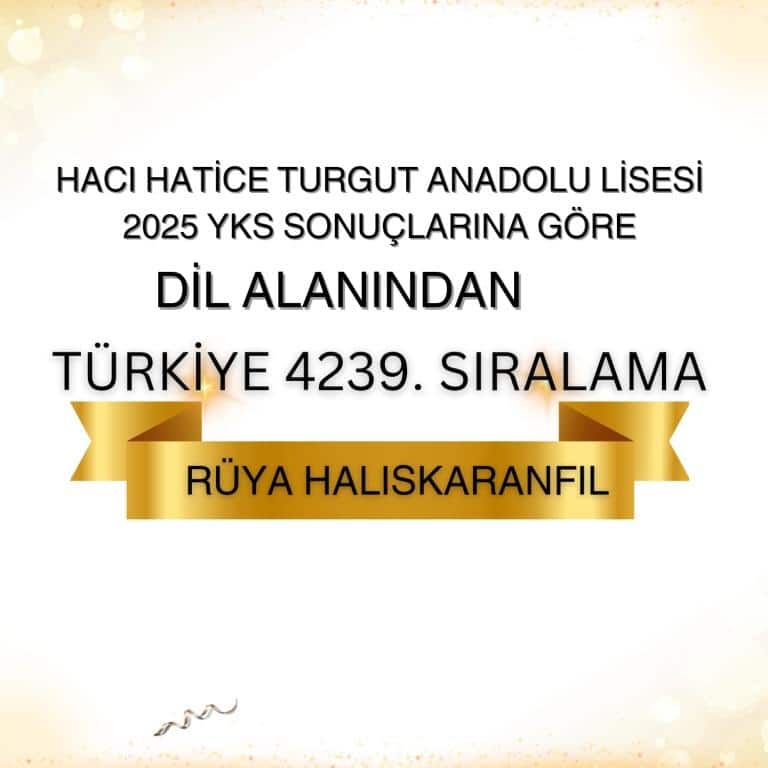 Dil alanı öğrencmiz Rüya HALİSKARANFİL 2025 YKS sonuçlarına göre 4239. olarak büyük bir başarıya imza attı. Öğrencimizi tebrik ediyor, başarılarının katlanarak devam etmesini diliyoruz.